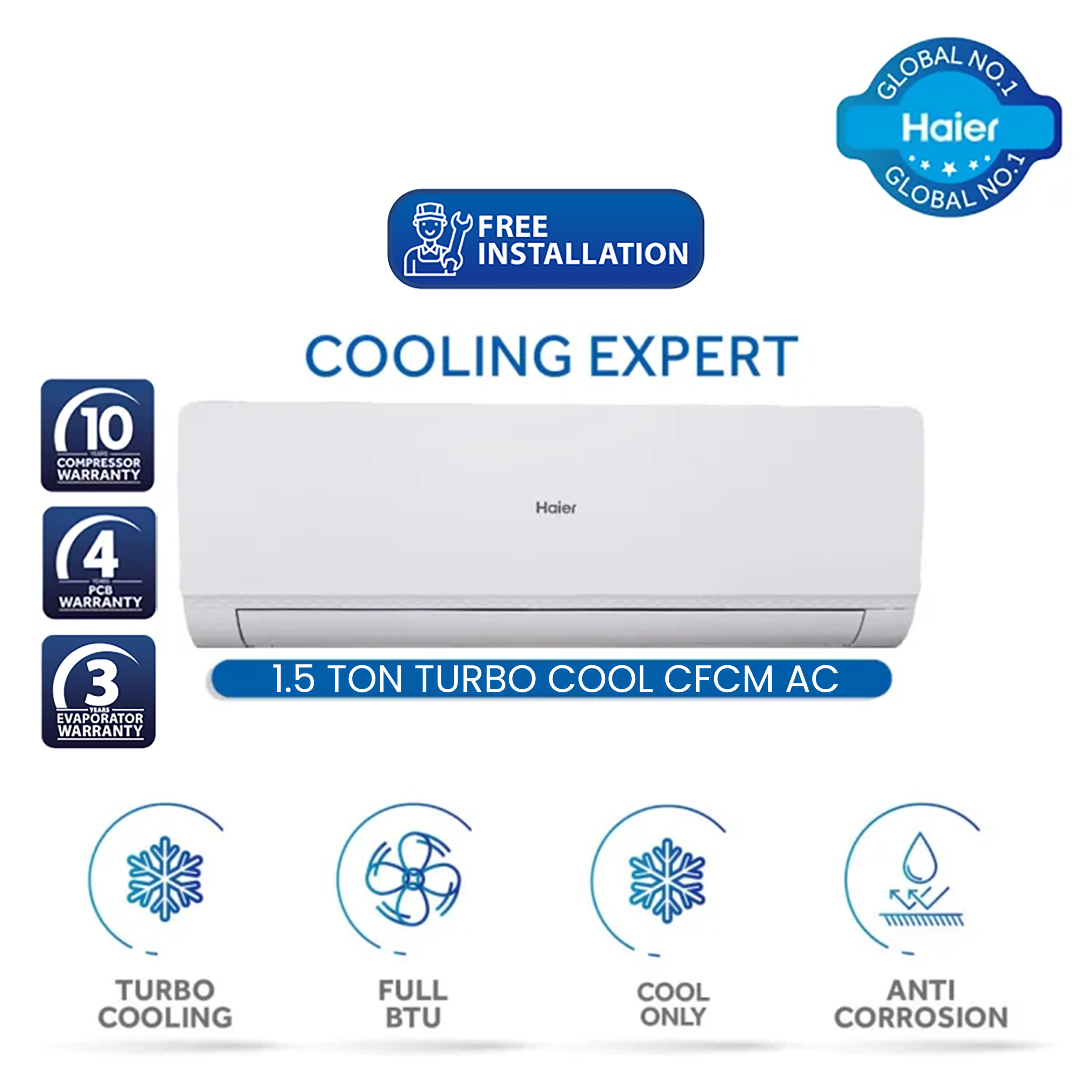 Haier 1.5 Ton Non Invertor A/C Turbo Cool Series – Model 18-CFCM