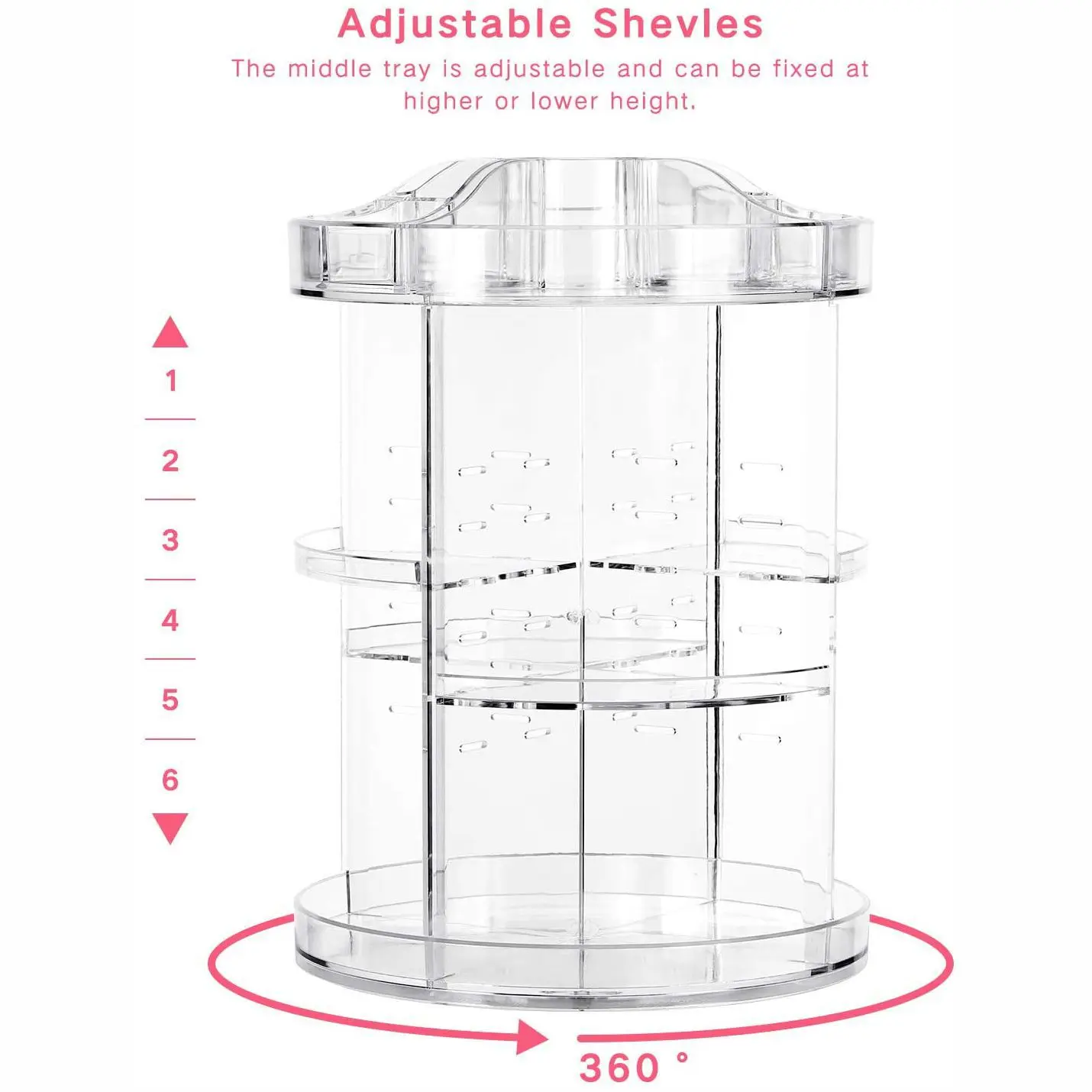 360 degree Cosmetic Organizer, adjustable cosmetic storage display case