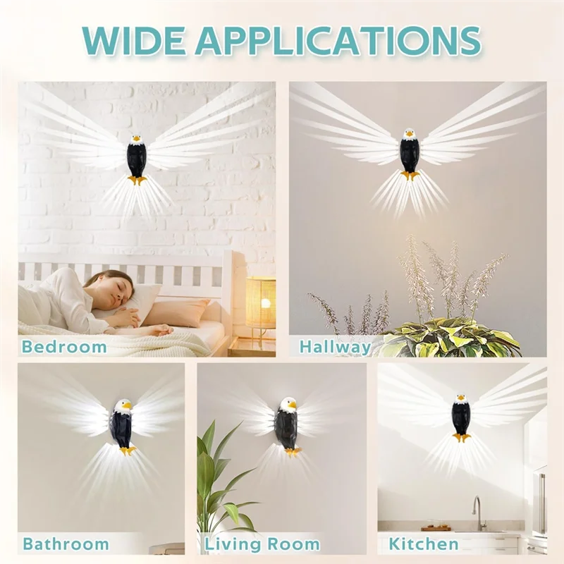 Add elegance and brightness to your space today with this wall-mounted eagle lamp.