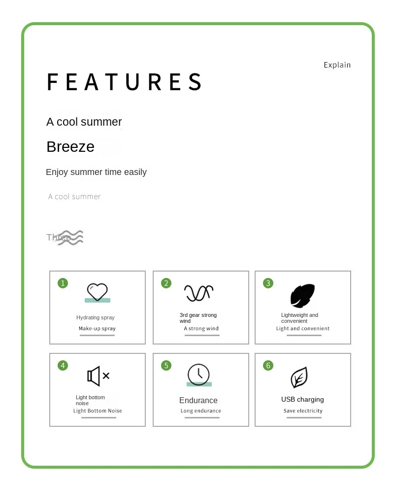 2-in-1 Cooling & Hydration – Enjoy a gentle breeze with refreshing mist spray.