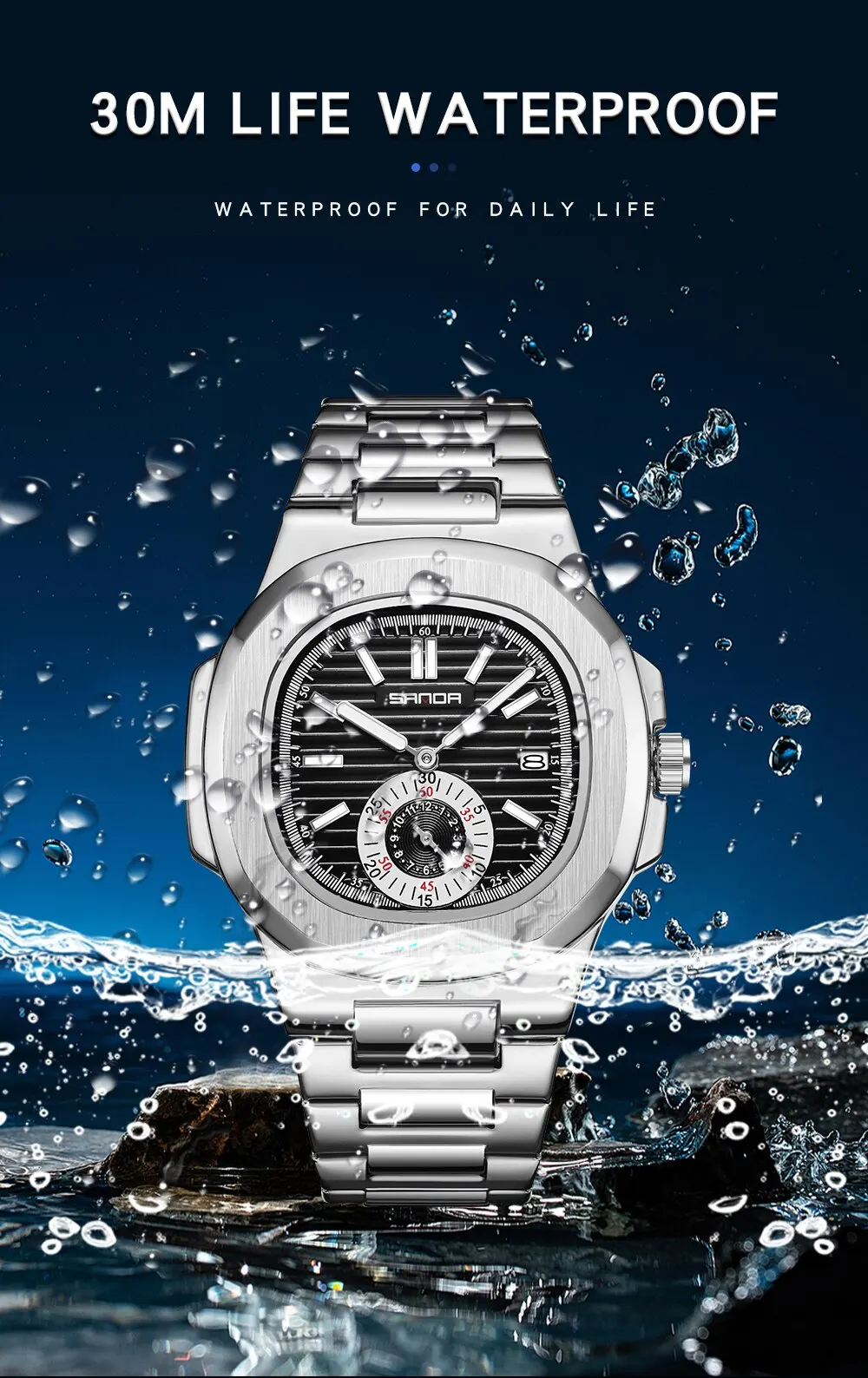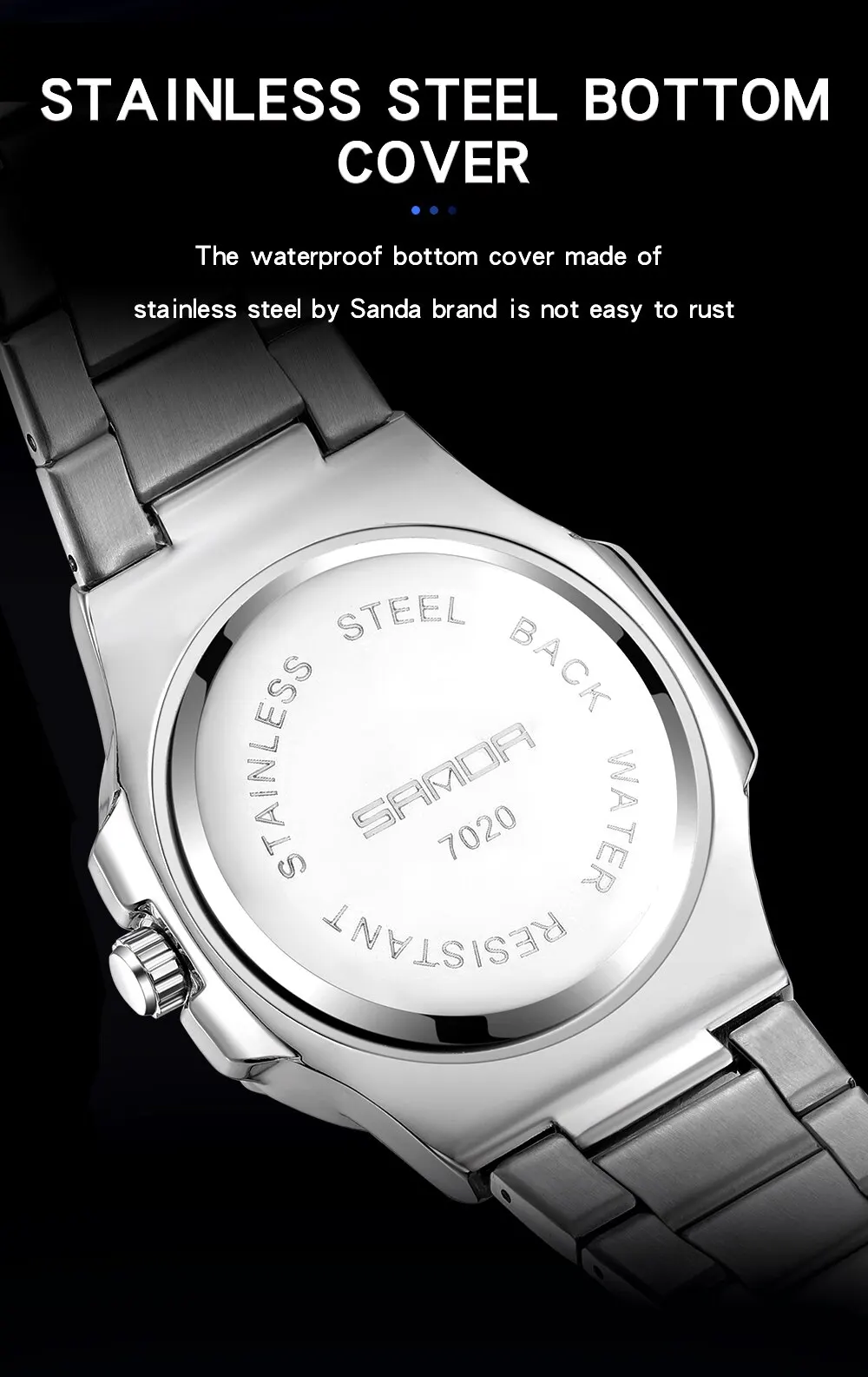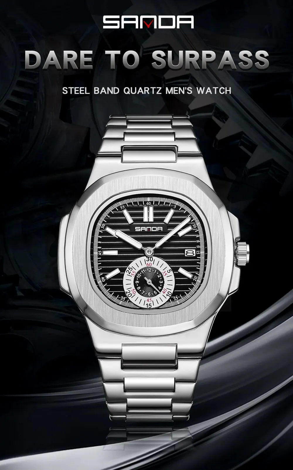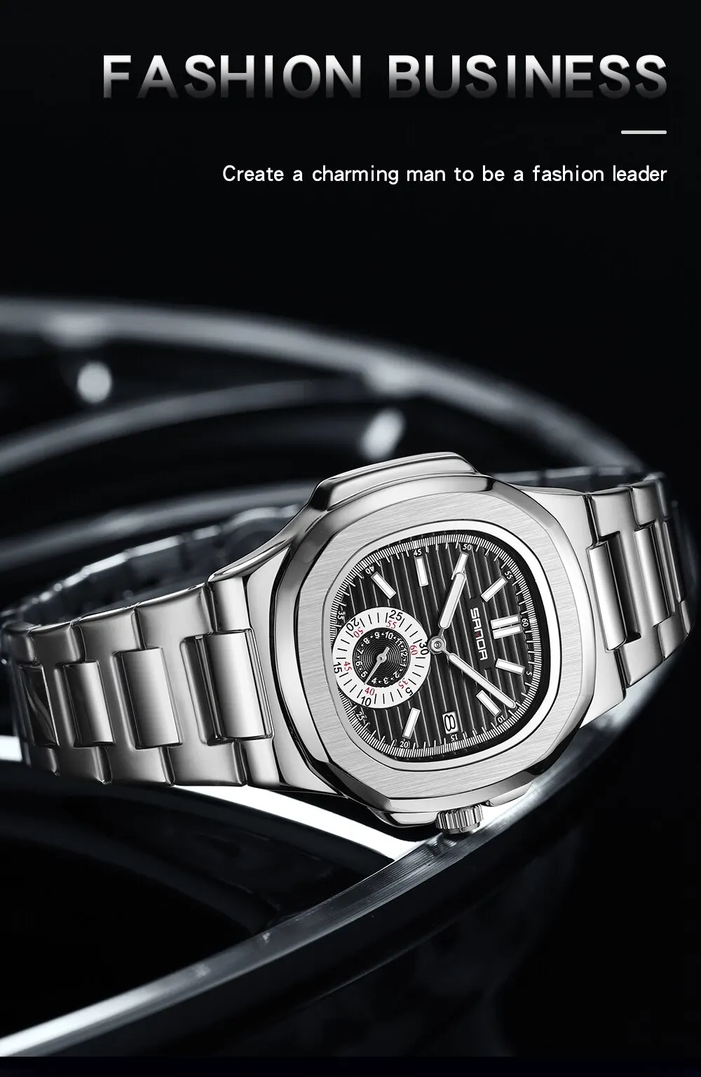 SANDA Luxury Watch Business Waterproof Male Clock Luminous Date Stainless Steel Square Quartz Men Watch Reloj Hombre
