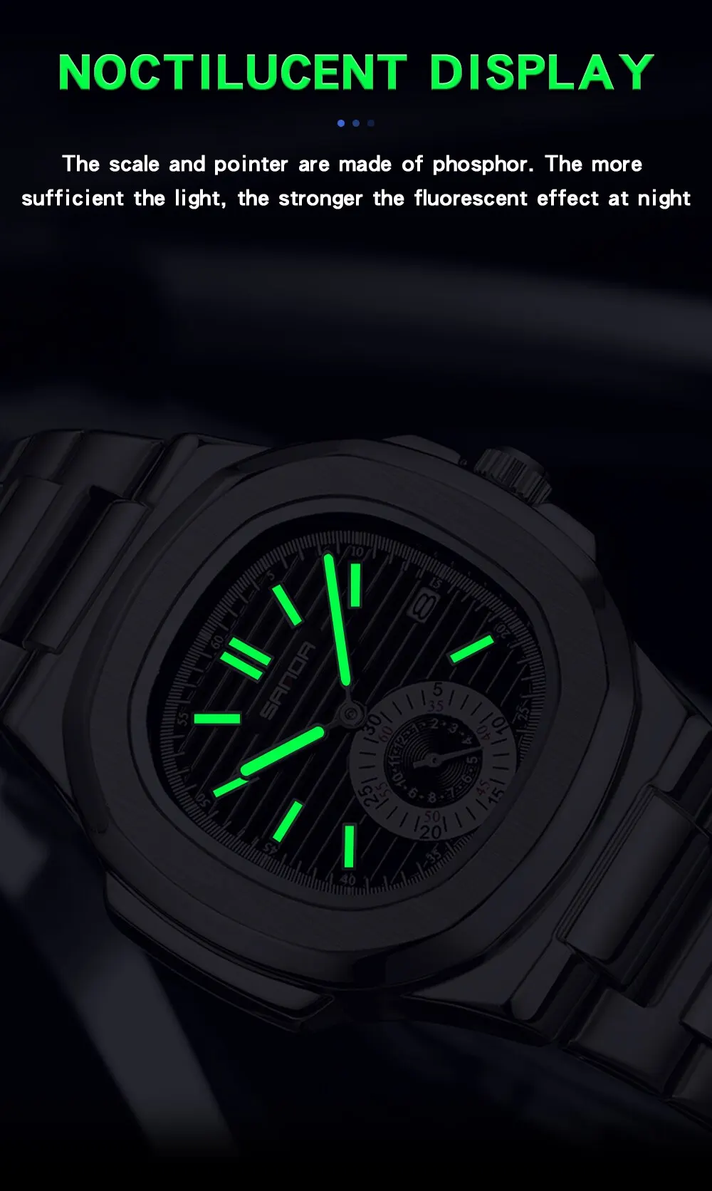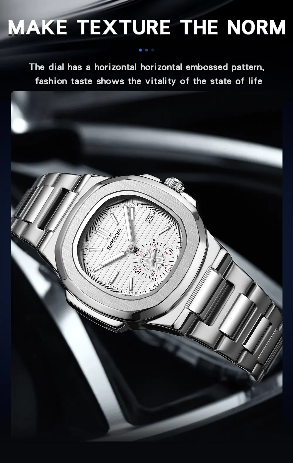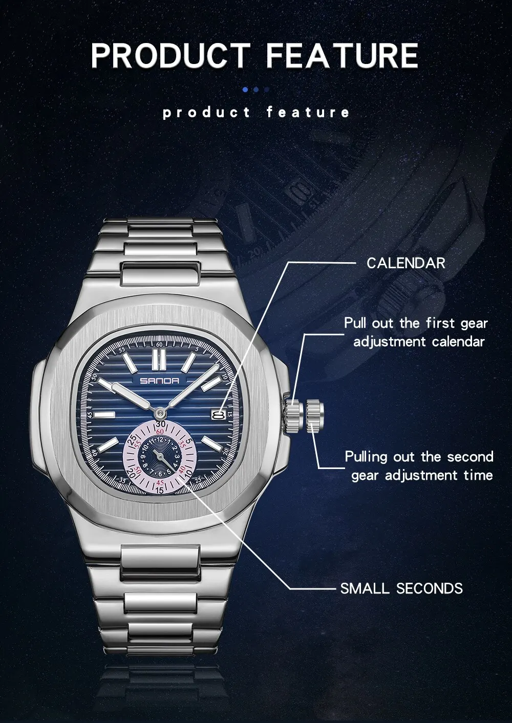 SANDA Luxury Watch Business Waterproof Male Clock Luminous Date Stainless Steel Square Quartz Men Watch Reloj Hombre