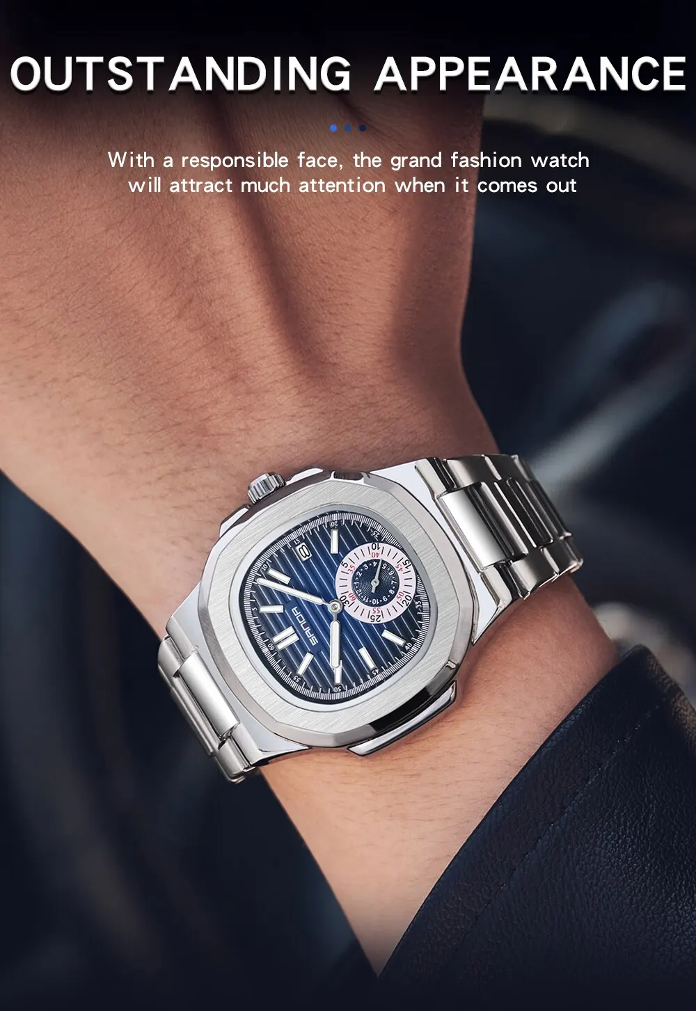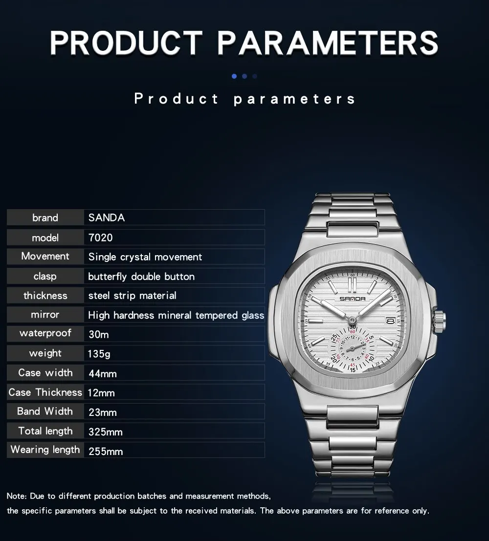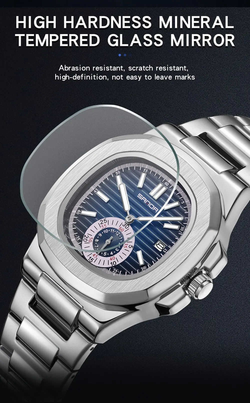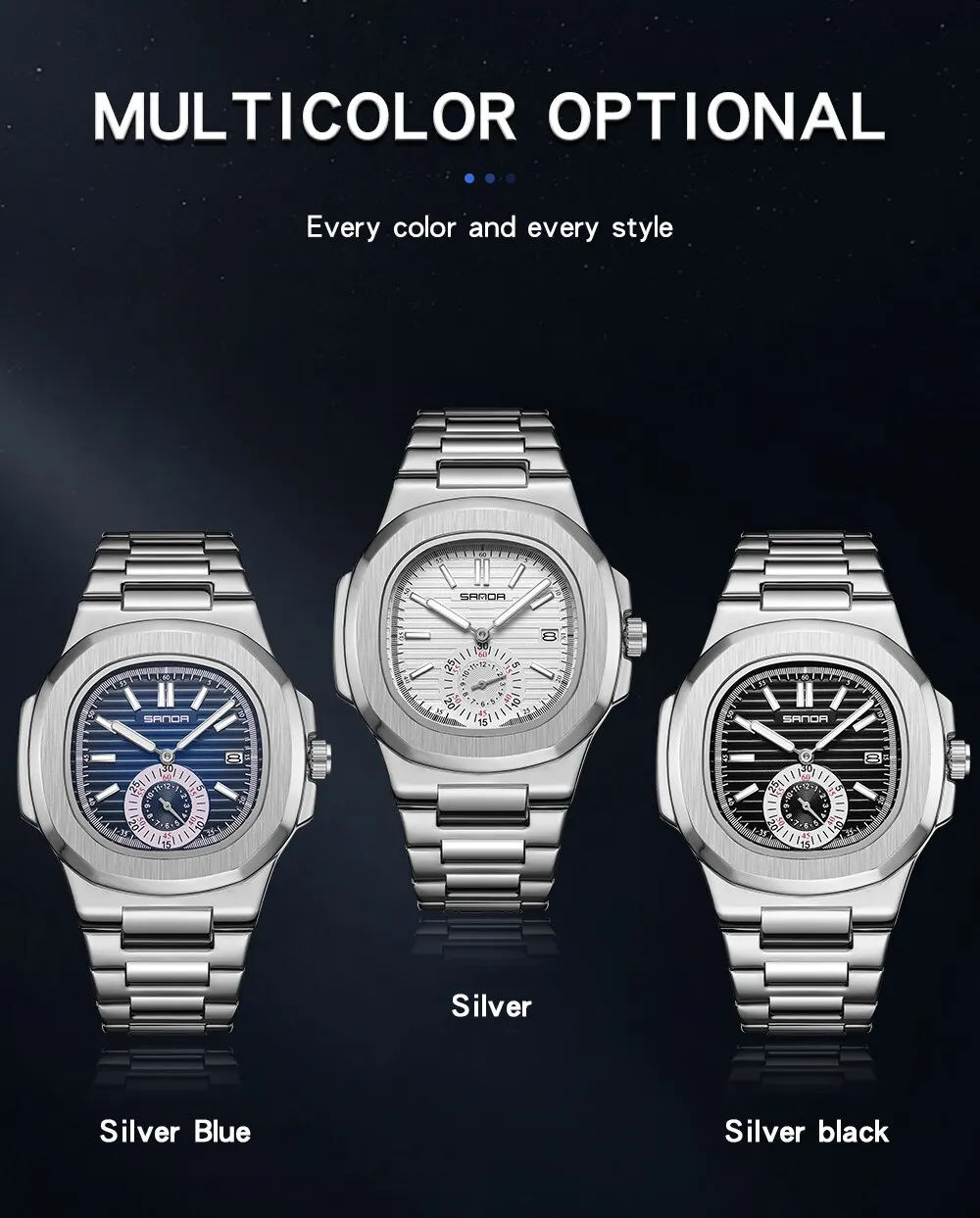 SANDA Luxury Watch Business Waterproof Male Clock Luminous Date Stainless Steel Square Quartz Men Watch Reloj Hombre