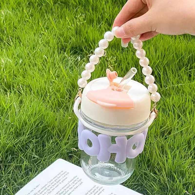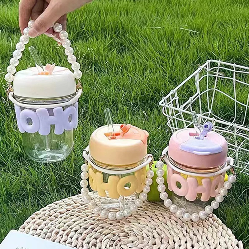 Pearl Bracelet Water Cup – Transparent Anti-Scalding Glass Straw Cup