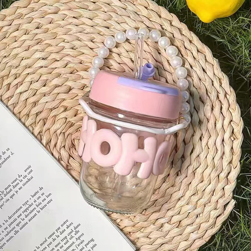 Its unique bracelet-style handle adds elegance, while the included reusable straw makes it practical for daily use. This trendy glass cup is lightweight, portable, and ideal for home, office, or travel.