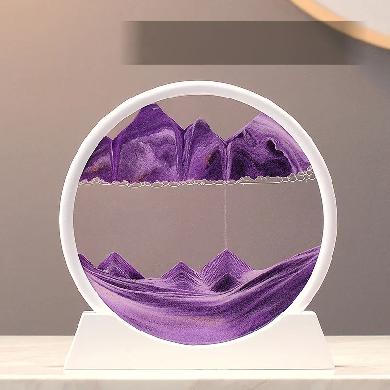 Round Glass Design: Elegant round glass frame enhances the beauty of the sand art and suits modern interiors.