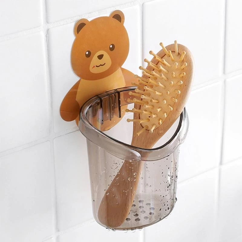 Wall Mounted Bear Holder Cosmetics Toothbrush Storage Bathroom